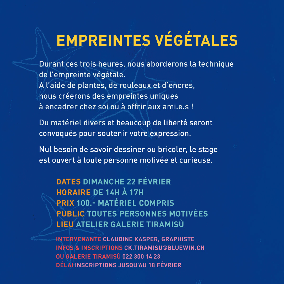 Les stages suivants ont été maintes fois dispensés : monotype, carnet de voyage, calligraphie, fabrication de tampons, cartes de vœux.